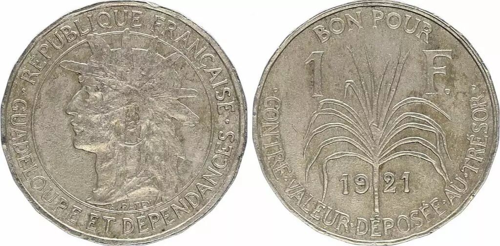Coin Guadeloupe 1 Franc Indian's head - 1921