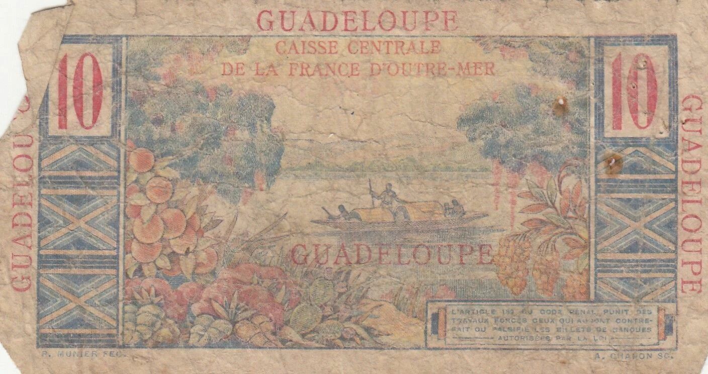 Although the information provided does not detail the specific visual elements of the banknote, it can be assumed that it includes graphic representations related to Colbert or symbols of Guadeloupe. The colors used, security features, and specific inscriptions are not described here.