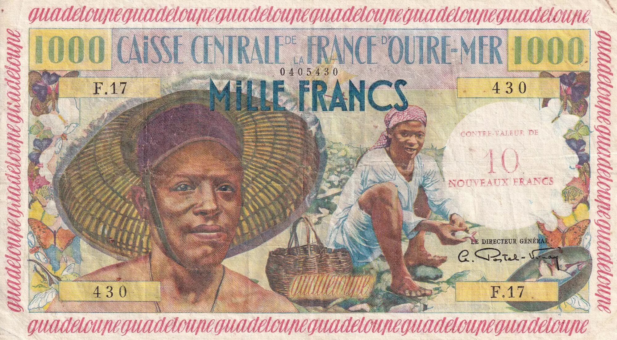 Home > > Guadeloupe 10 NF on 1000 Francs - Fisher - 1960 - Serial F.17 - VF - P.43