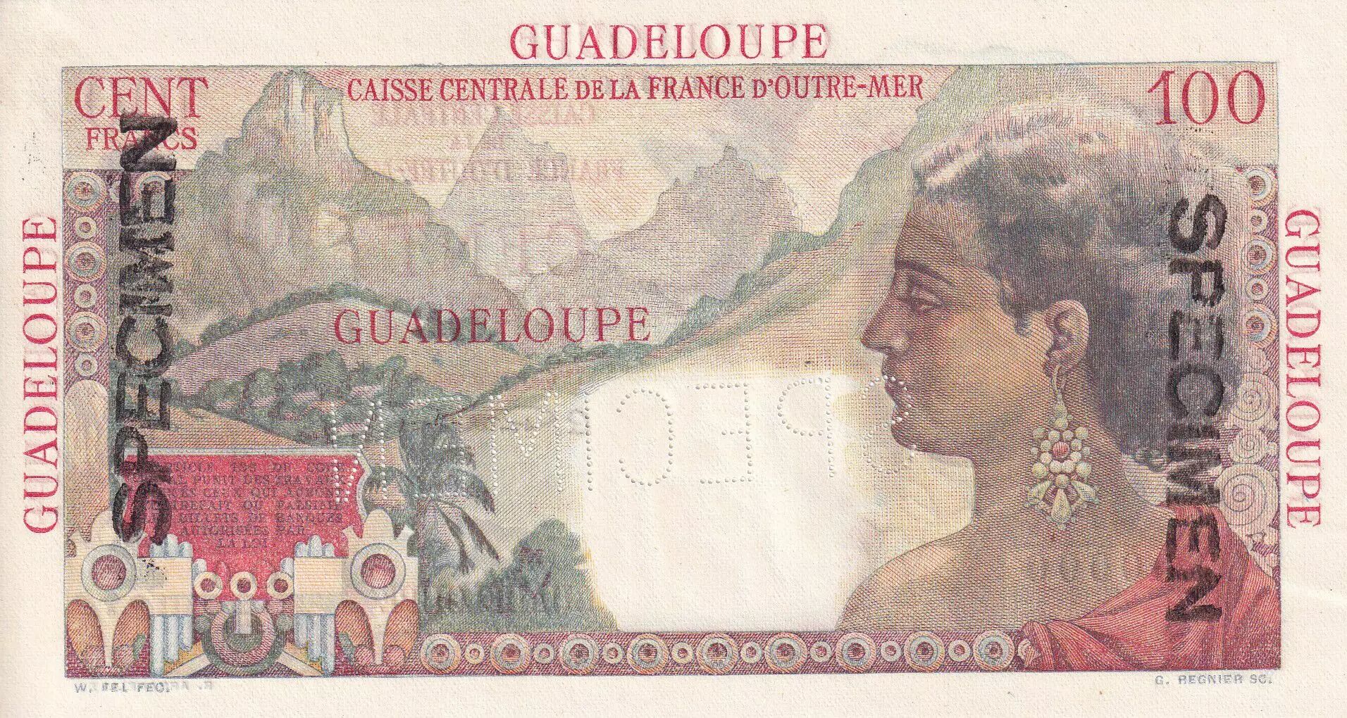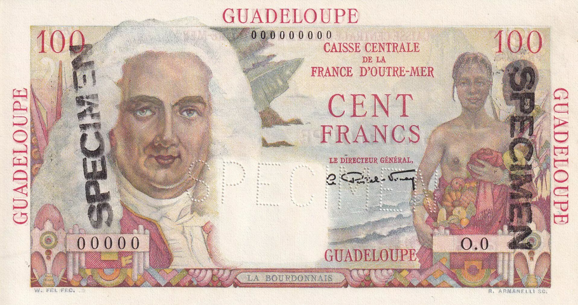 Billet Guadeloupe 100 Francs - La Bourdonnais - Spécimen - 1946 - P.NEUF - Kol.133.1