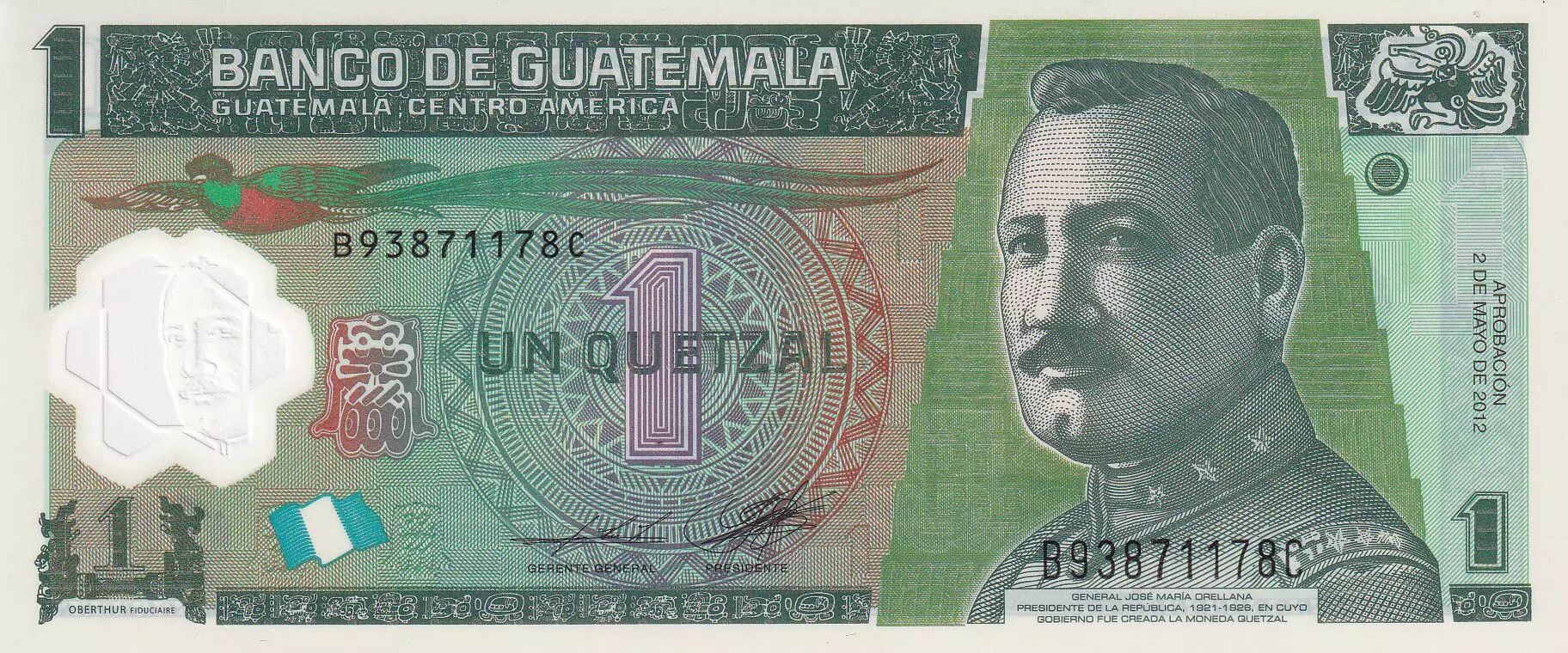 Home > > Guatemala 1 Quetzal - General Orellana - Polymer - Serial B - 2012 - P.115c