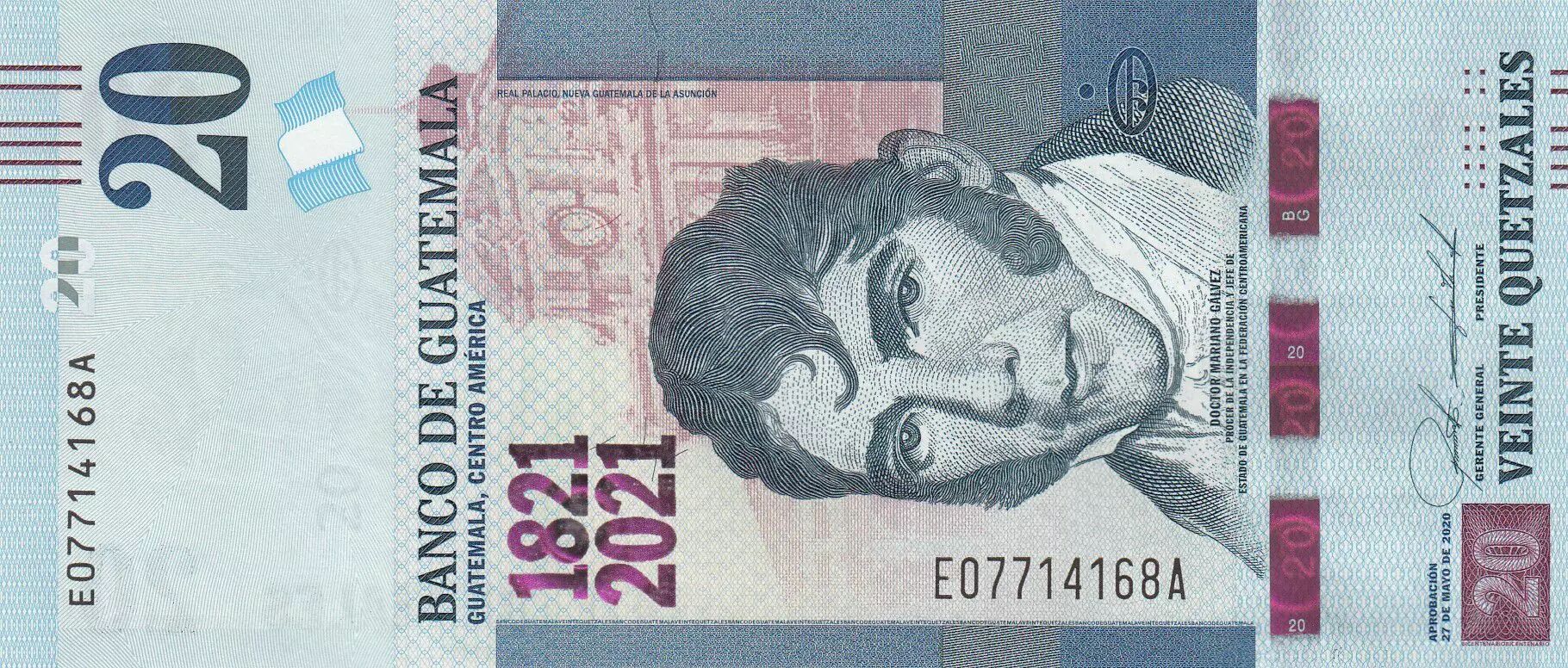 Accueil > Billets du Monde > Billets d'Amérique > Guatemala > Guatemala 20 Quetzales M. Galvez - Acte Indépendance - Format vertical - 2020 - P.NEW