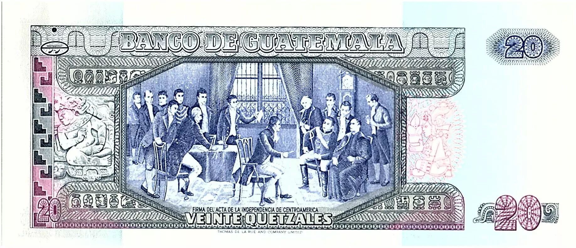 Banknote Guatemala 20 Quetzales, Mariano Galvez - Independence act - 1990