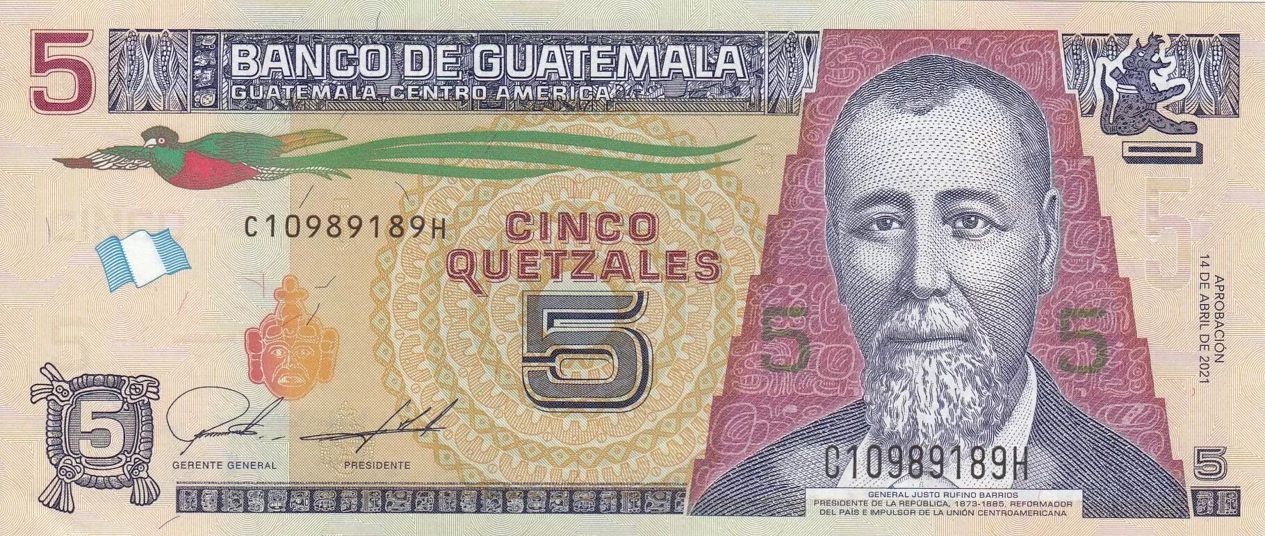 Accueil > Billets du Monde > Billets d'Amérique > Guatemala > Guatemala 5 Quetzales Général J. Rufino Barrios - 2021 (2023)