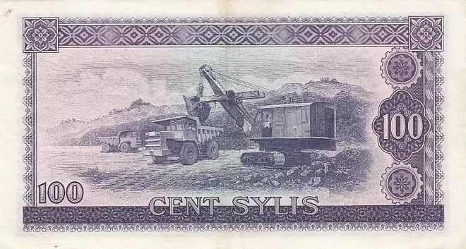 Banknote Guinea 100 Sylis 1960 - A.S. Touré - Open pit bauxite mining - Serial AC