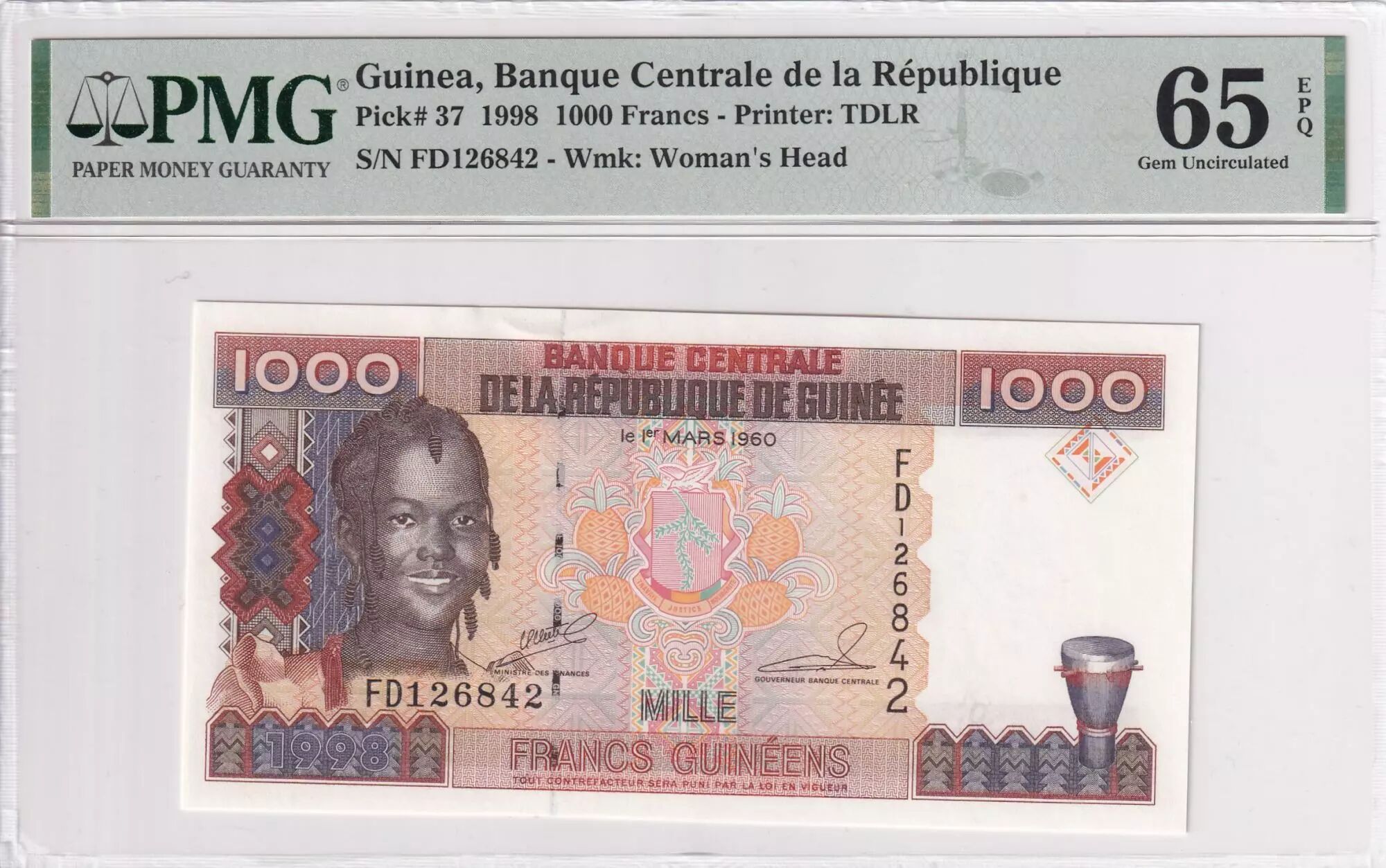 Home > World Banknotes > African Banknotes > Guinea > Guinea 1000 Francs - Woman - Bauxite - 1998