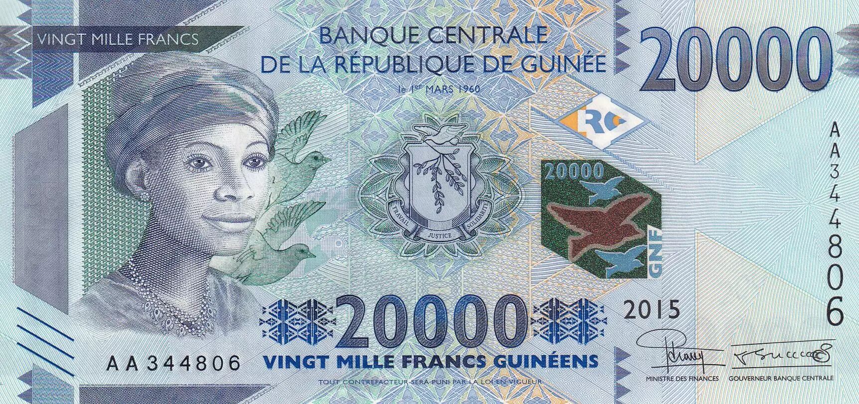 Banknote Guinea 20000 Francs - African woman - Barrage - 2015 - P.50