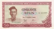 Banknote Guinea 50 Sylis 1980 - A.Y. Diallo, Dam - Serial AI