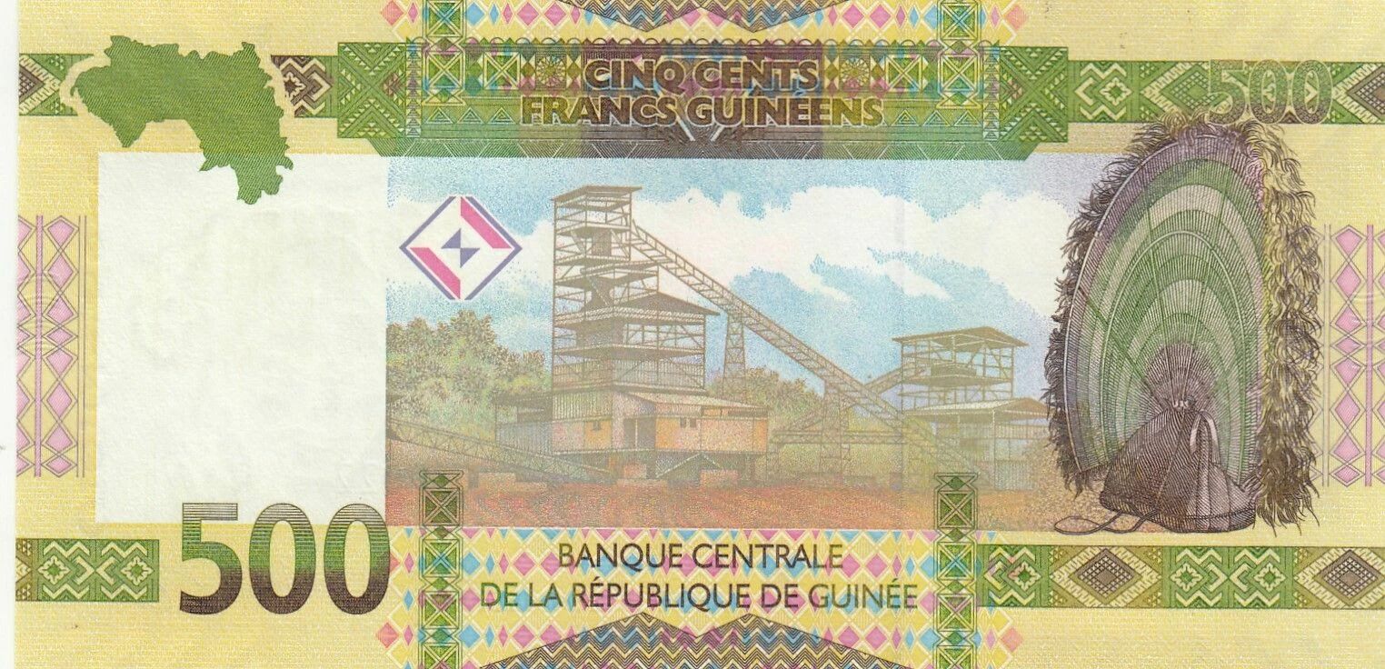 The motif of the mining conveyor is highlighted on the banknote. This motif illustrates the importance of the mining industry in the Guinean economy, emphasizing the extraction and transport of the country's natural resources. The representation of the mining conveyor testifies to the industrial activity and its impact on the economic development of Guinea.