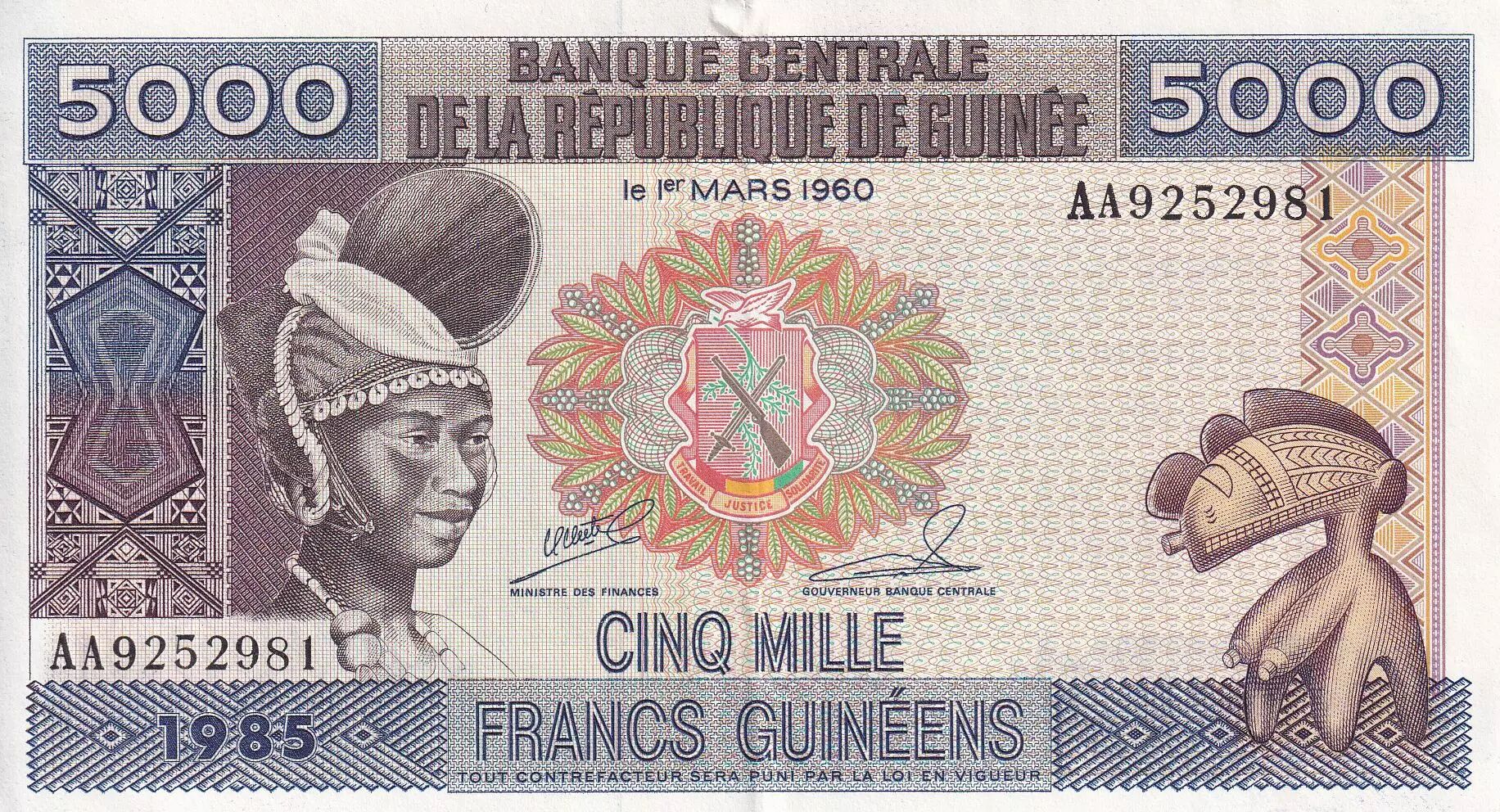Banknote Guinea 5000 Francs - Woman - Barrage - 1985 - P.33