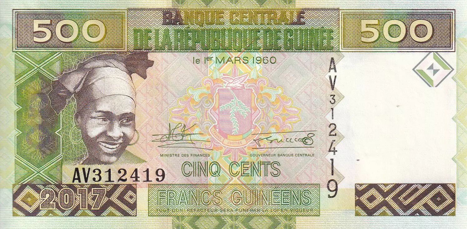 Accueil > Archivage > Guinée 500 Francs - Jeune femme - 2017 - P.47b