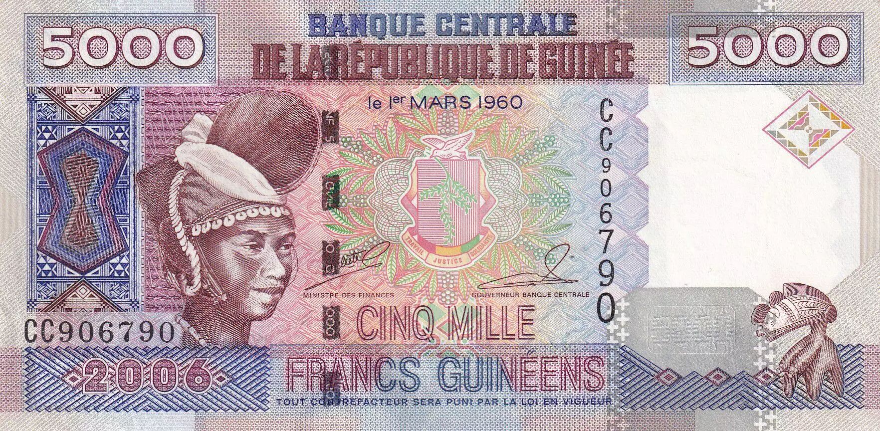 Billet Guinée 5000 Francs - Femme - Barrage - 2006 - NEUF - P.41