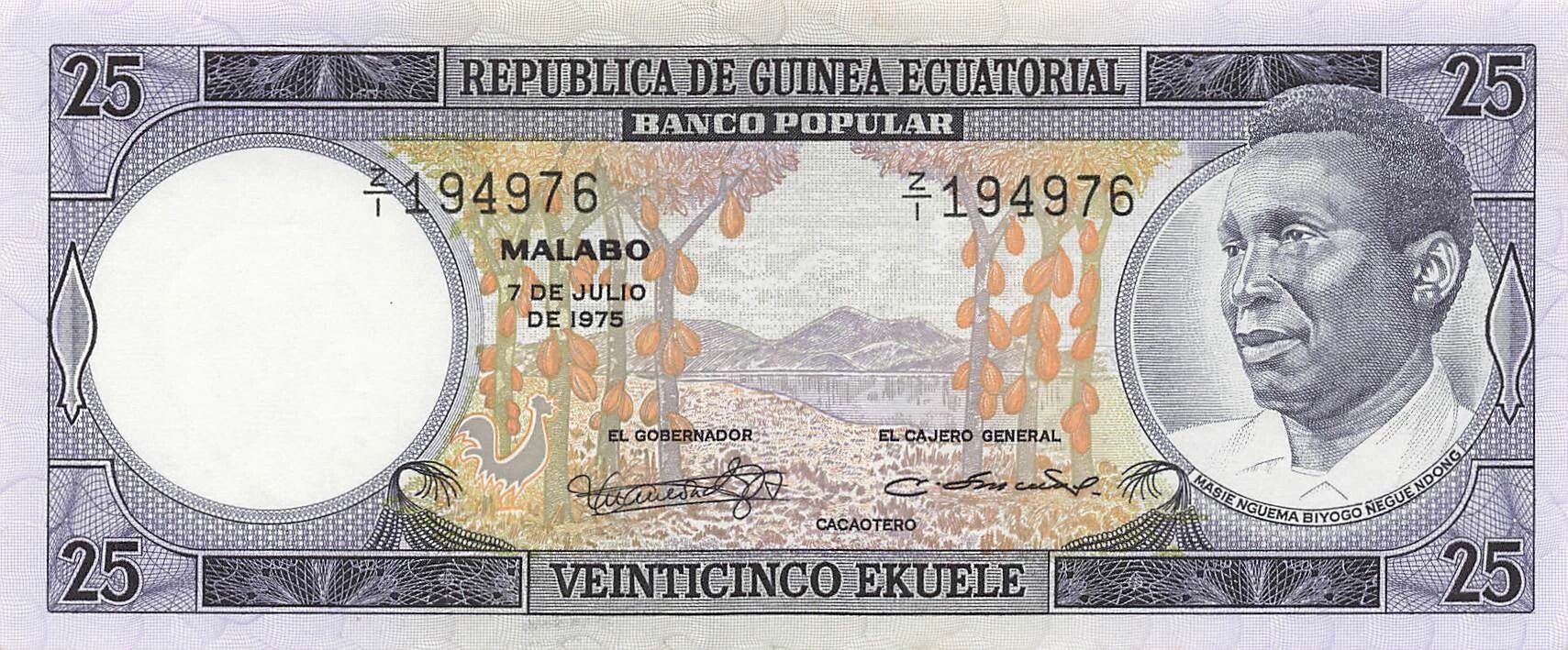 Billet Guinée Equatoriale 25 Ekuele - 07-07-1975 - Remplacement - P.9