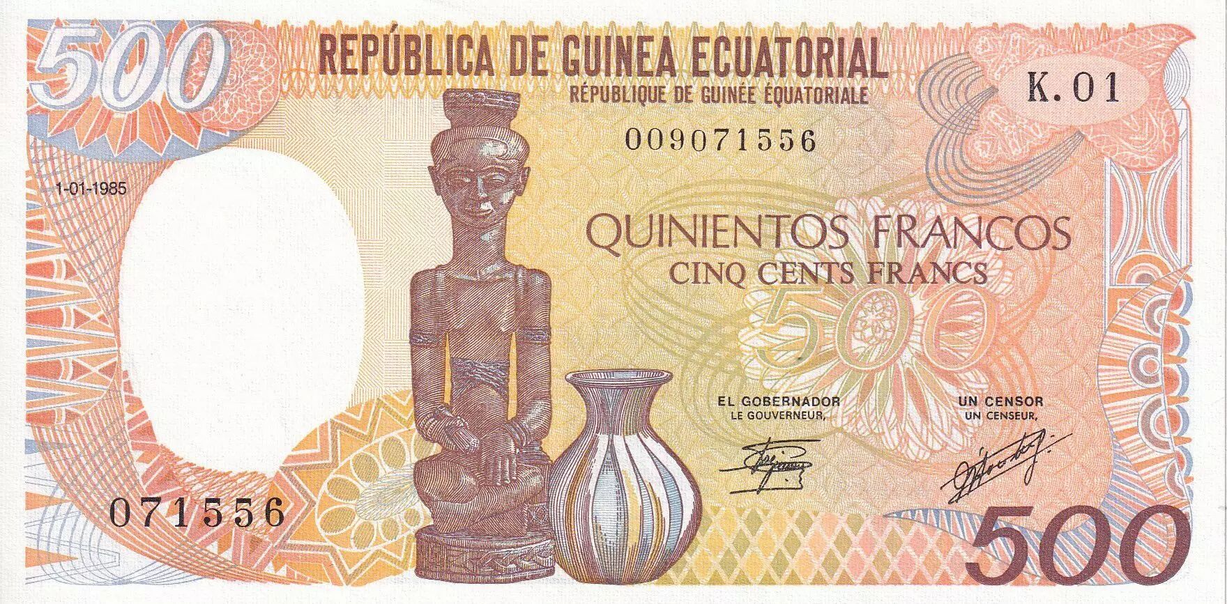 Billet Guinée Equatoriale 500 Francs - Statuette et cruche - 1985 - Série K.01 - P.NEUF - P.20