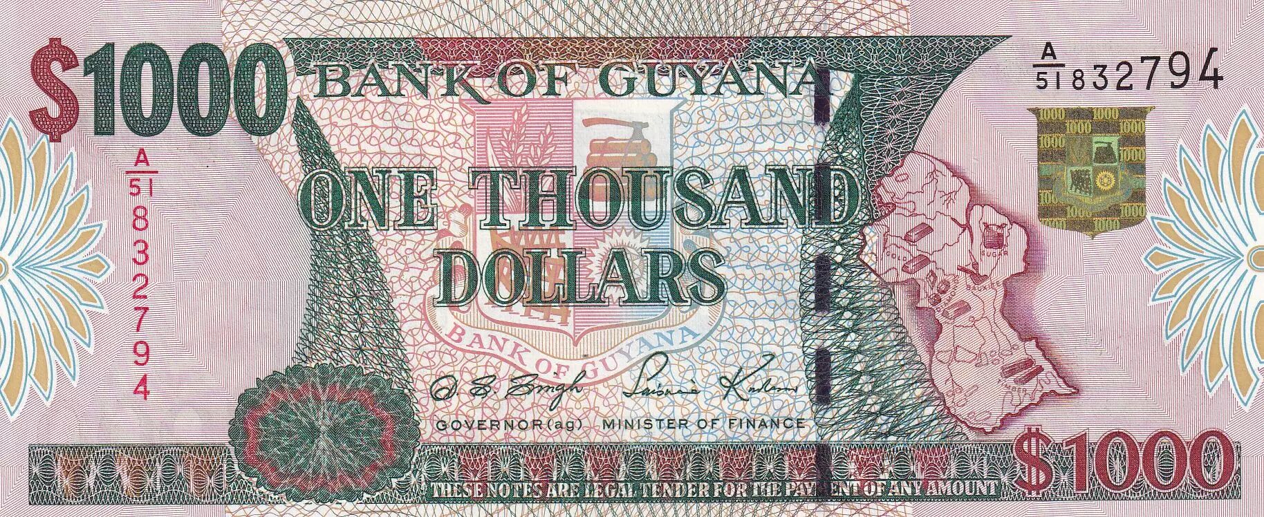 Home > > Guyana 1000 Dollars - Map of Guyana - Modern bldg - ND (2000) - P.35