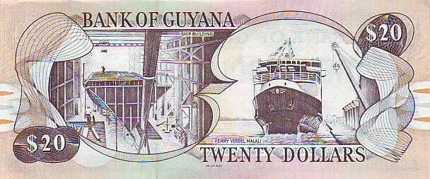 Billet Guyana 20 Dollars Cascade Kaieteur - Chantier naval