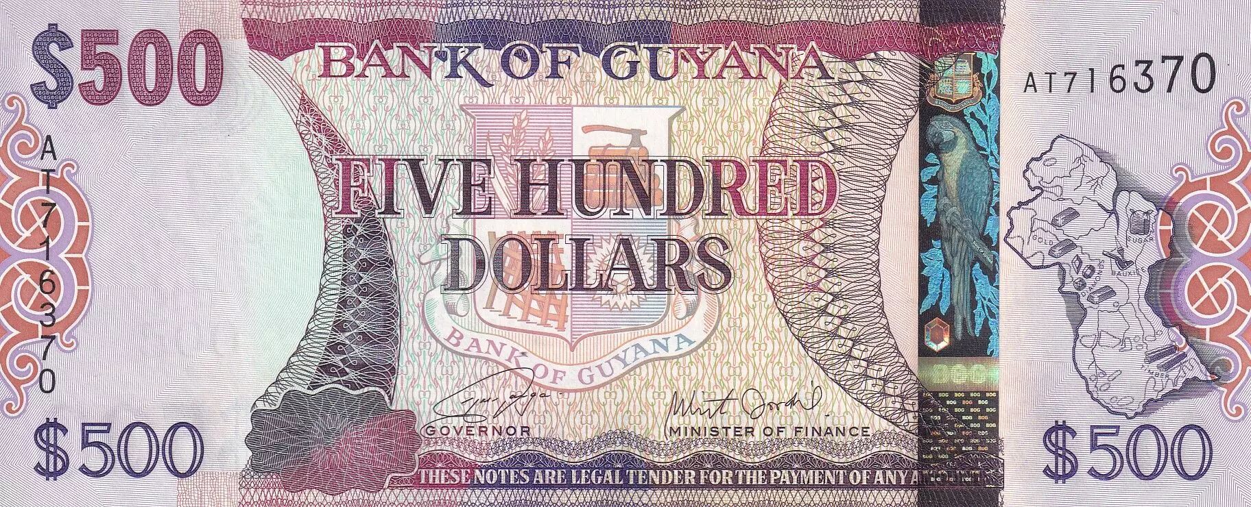 Home > > Guyana 500 Dollars - Map of Guyana - ND (2018) - Serial AT - P.37B