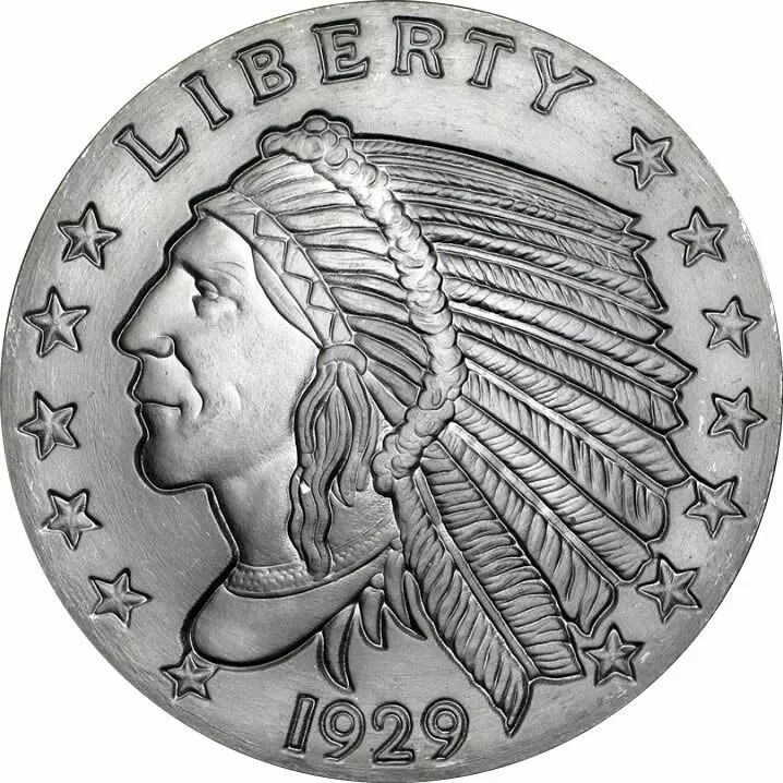 Pièce Guyane Française Indien Eagle 1929 - 2 ONCES ARGENT BULLION (Reproduction Incuse)