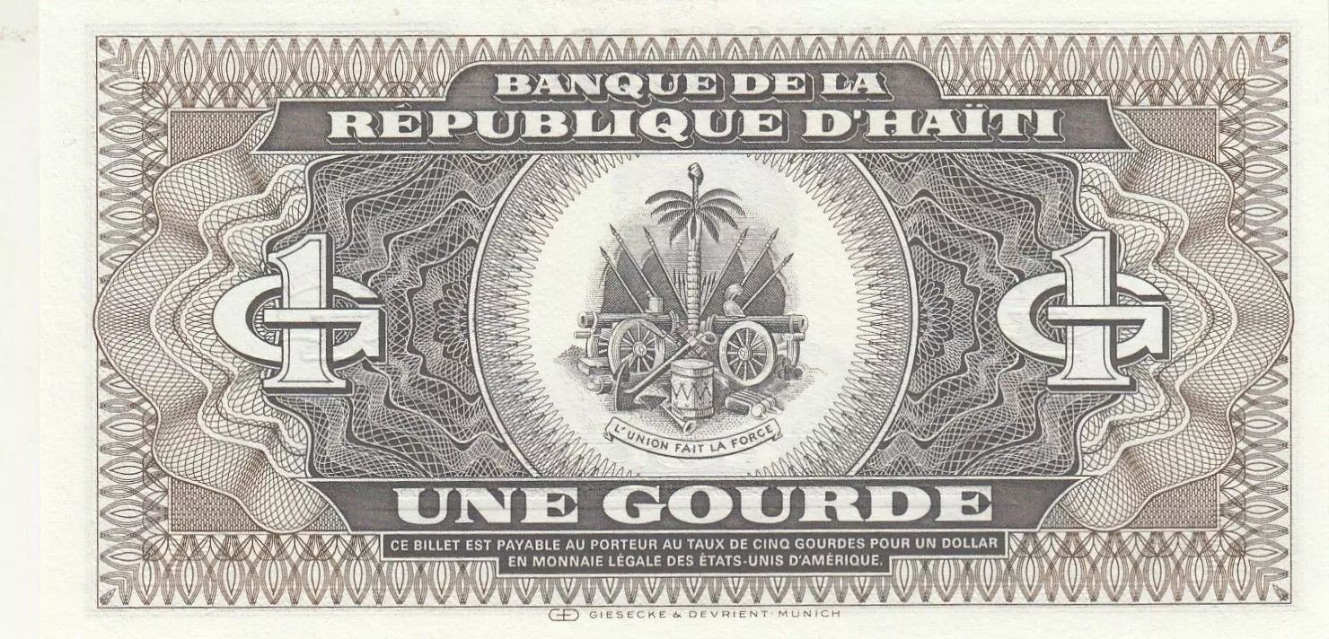 Banknote Haiti 1 Gourde - Toussaint L'Ouverture - Arms - 1989 - Serial letter B