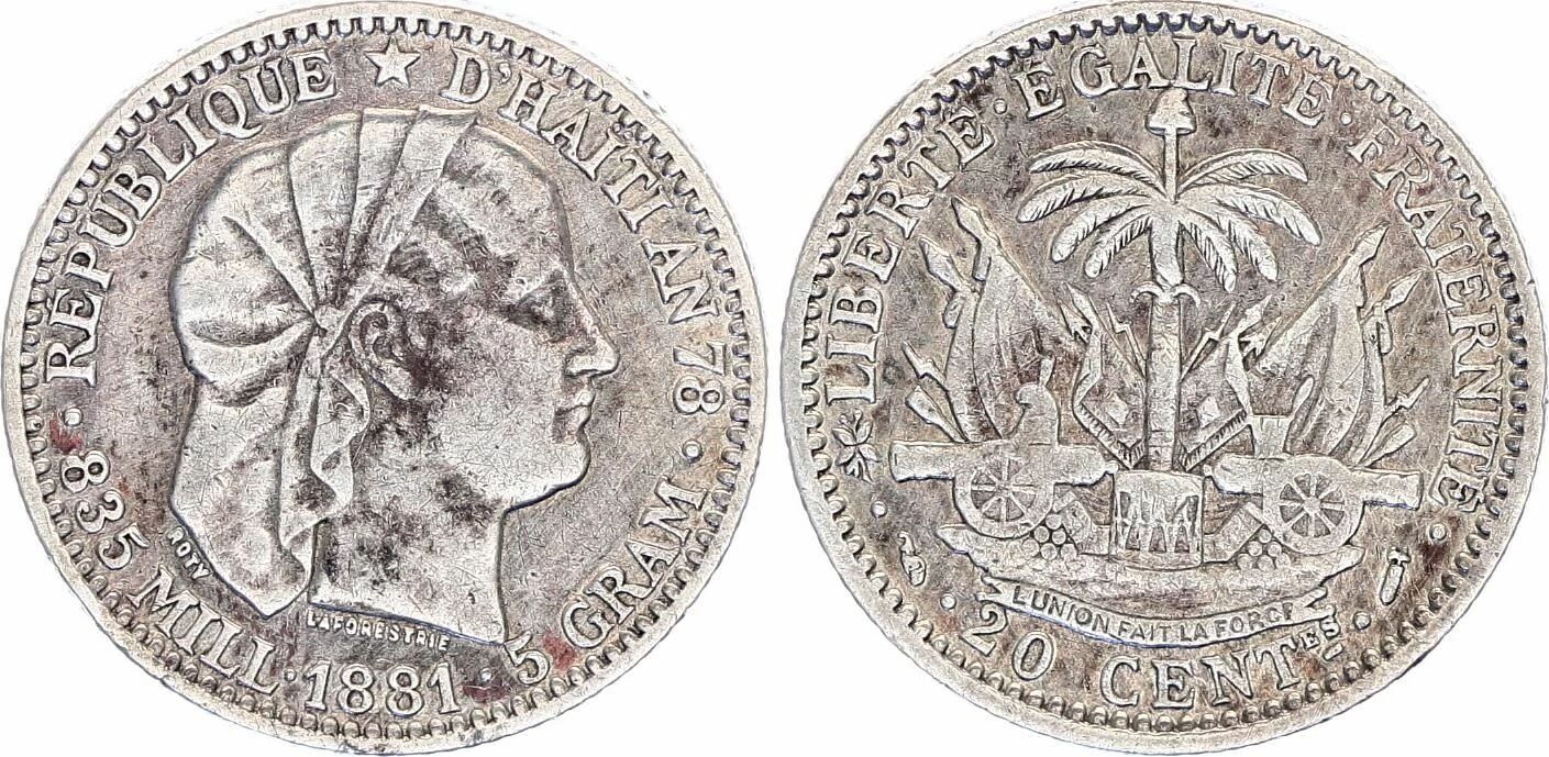 Home > > Haiti 10 Silver Centimes - 1881 Paris