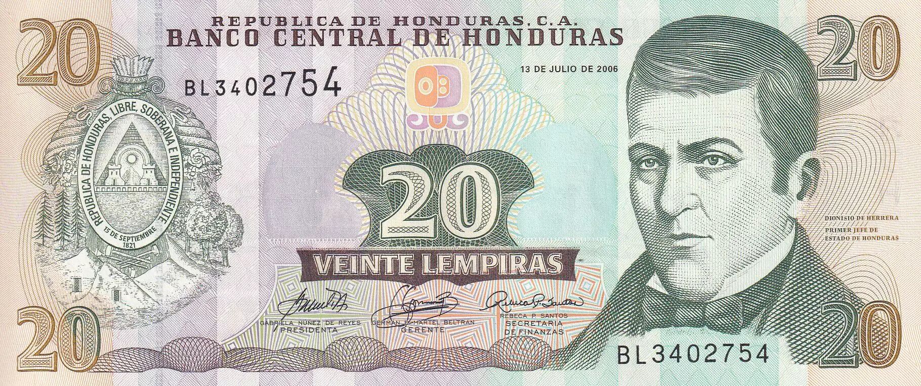 Home > > Honduras 20 Lempiras - Dionisio De Herrera - Presidential house - 2006 - Serial BL - P.93a