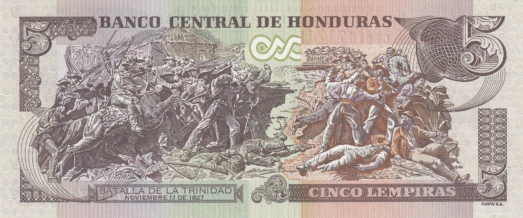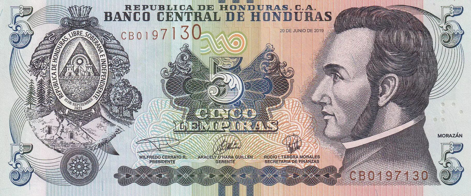 Billet Honduras 5 Lempiras - Morazan - Bataille de Trinidad - 2019 - Série CB - P.NEW