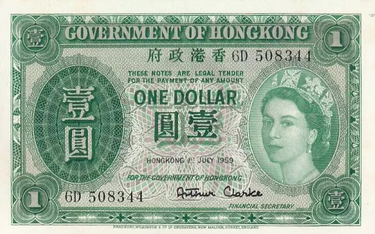 Billet Hong-Kong 1 Dollar - Elisabeth II - 1959 - Série 6D