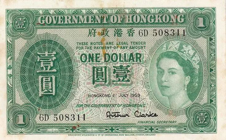 Billet Hong-Kong 1 Dollar - Elisabeth II - 1959 - Série 6D