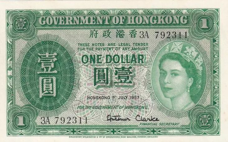 Home > World Banknotes > Asian Banknotes > Hong Kong > Hong Kong 1 Dollar - Elizabeth II - 1957 - Serial 3A