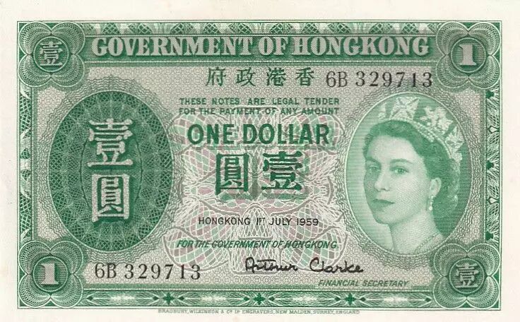 Home > World Banknotes > Asian Banknotes > Hong Kong > Hong Kong 1 Dollar - Elizabeth II - 1959 - Serial 6B
