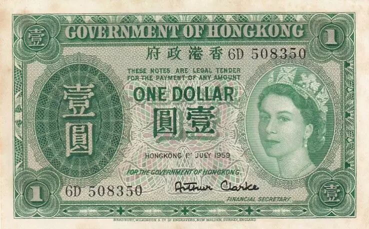 Home > World Banknotes > Asian Banknotes > Hong Kong > Hong Kong 1 Dollar - Elizabeth II - 1959 - Serial 6D