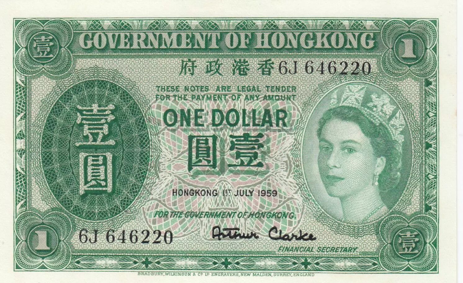 Billet Hong-Kong 1 Dollar - Reine Élisabeth - 1959 - Série 6J