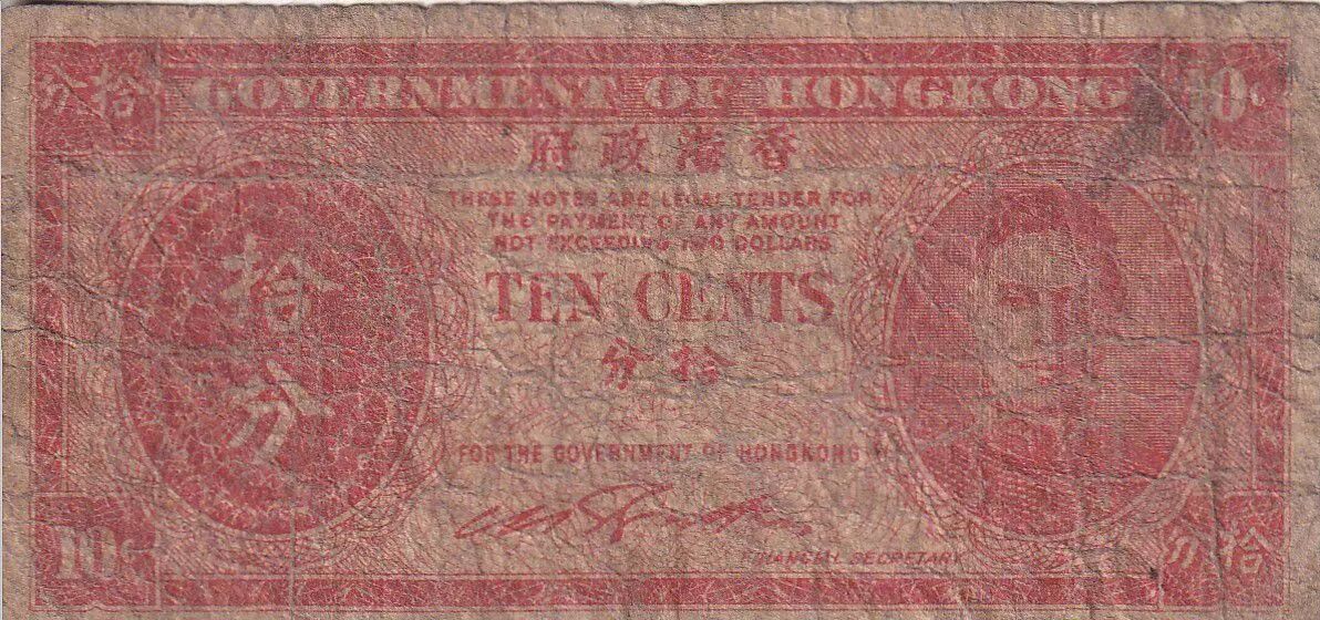 Banknote Hong Kong 10 Cents - George VI - ND (1945) - P.323