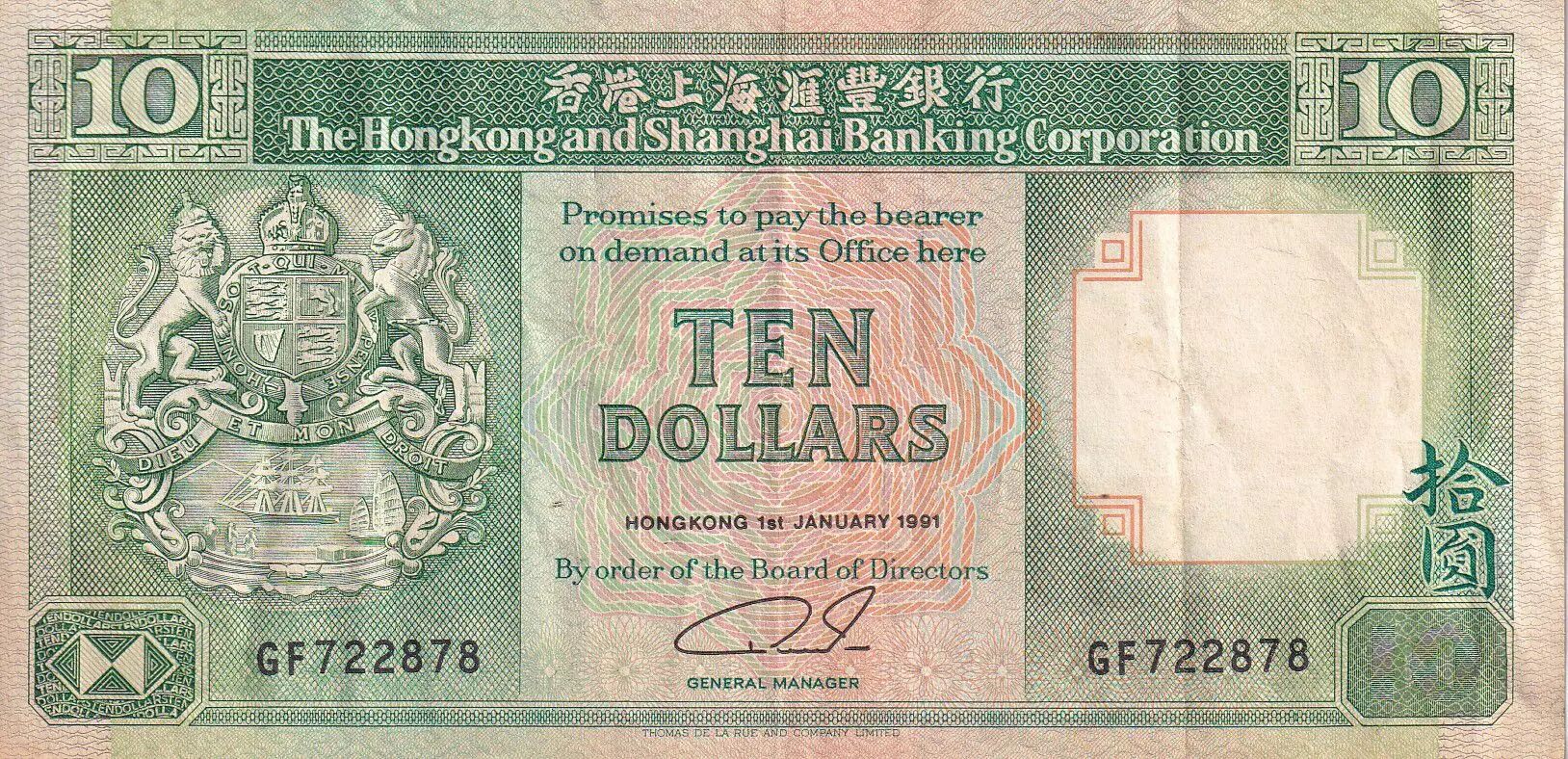 Accueil > Archivage > Hong-Kong 10 Dollars - Armoiries - Lions - Bateaux - 1991 - Série GF - P.191c