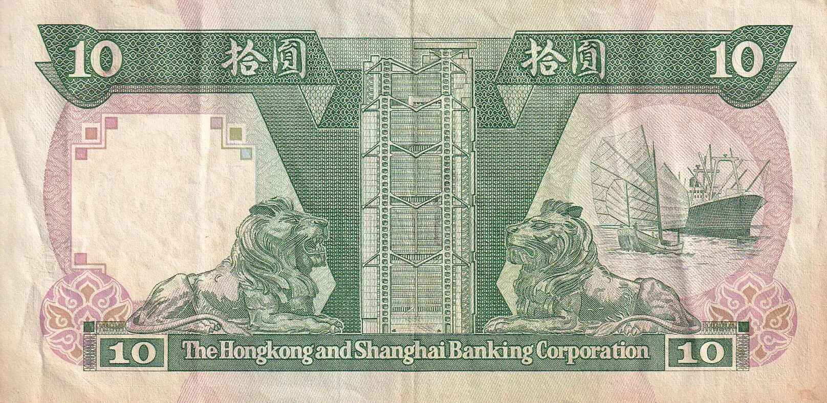 Banknote Hong Kong 10 Dollars - Arms - Lions - Ships - 1991 - Serial GF - P.191c