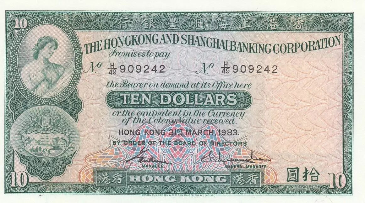 Billet Hong-Kong 10 Dollars, Femme - Amoiries - Banque - 1983