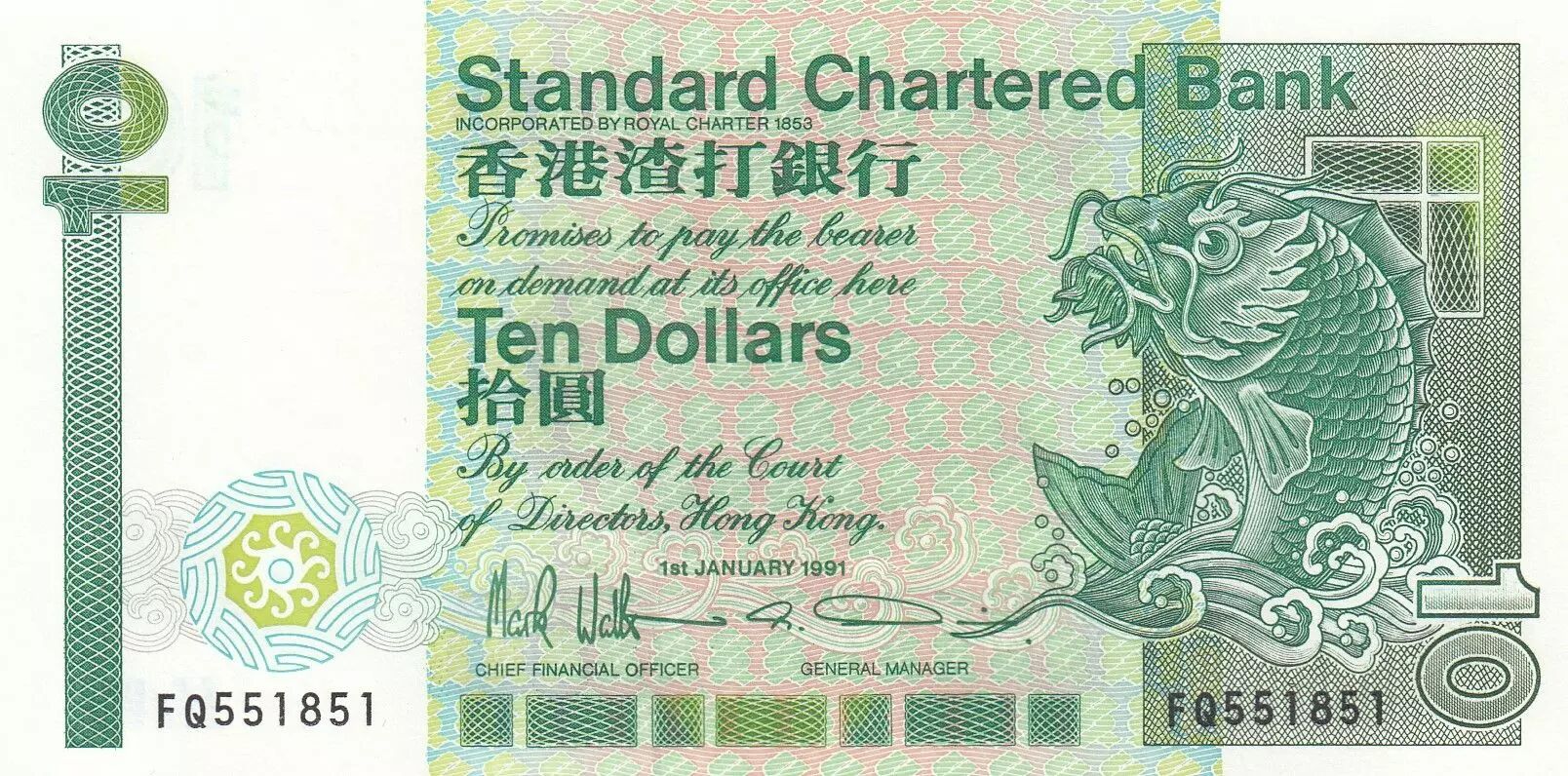 Accueil > Billets du Monde > Billets d'Asie > Hong-Kong > Hong-Kong 10 Dollars Standard Chartered Bank - Carpe - 1991