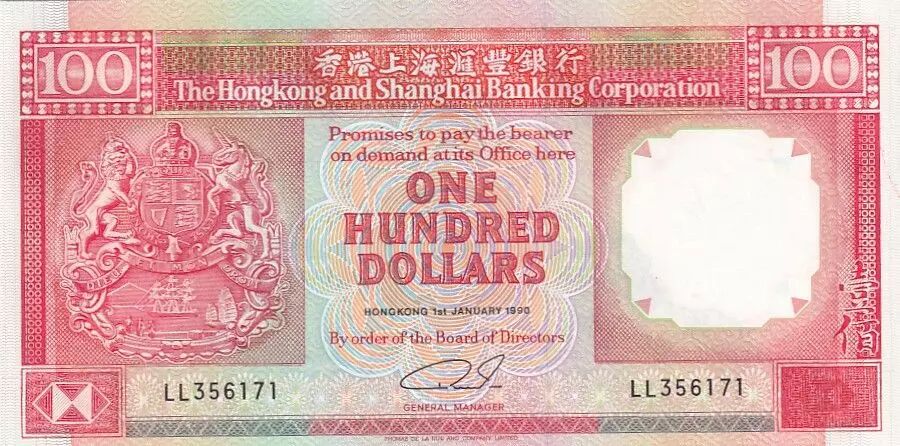 Accueil > Billets du Monde > Billets d'Asie > Hong-Kong > Hong-Kong 100 Dollars Armoiries - HSBC - 1990