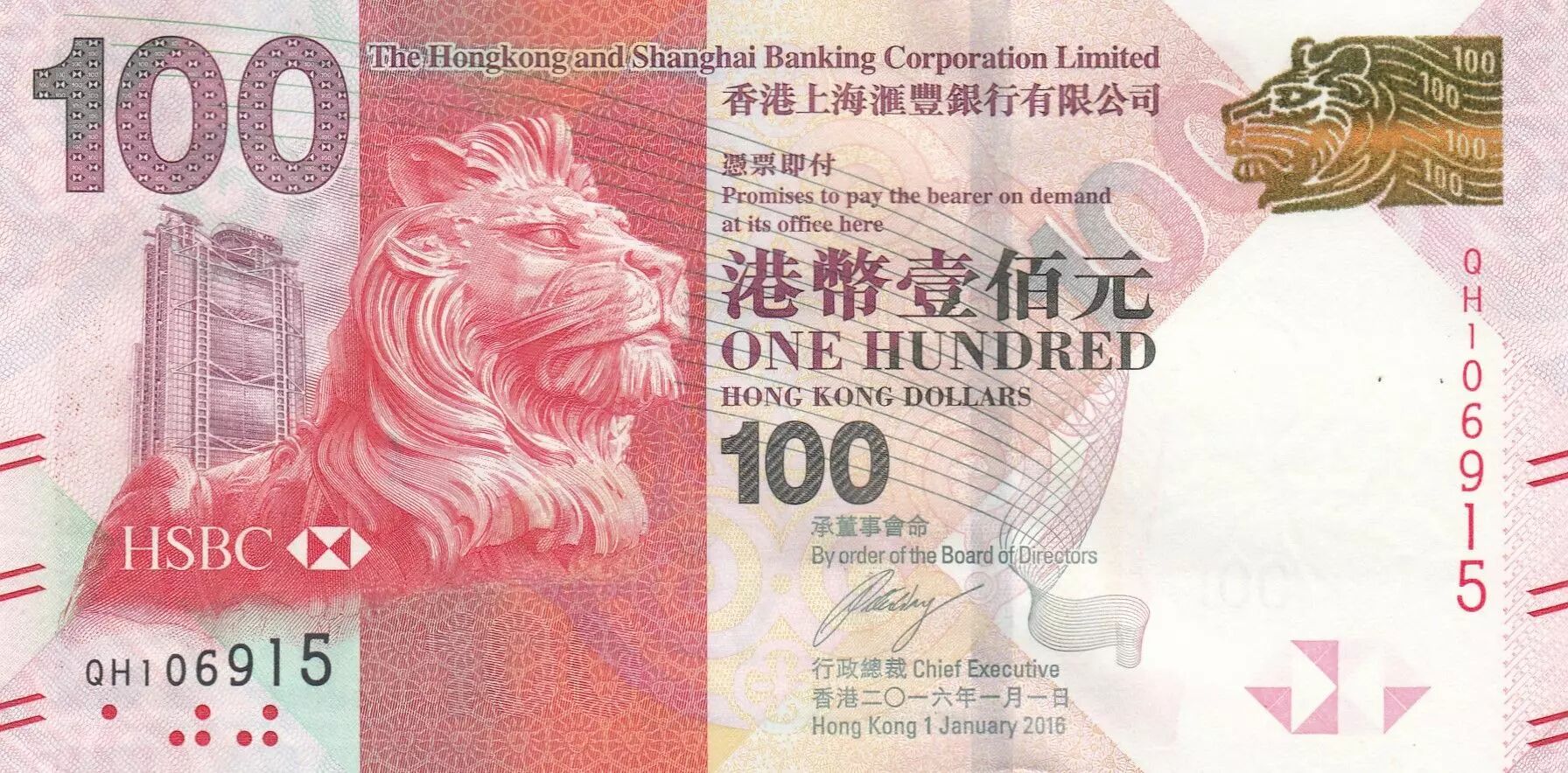 Home > World Banknotes > Asian Banknotes > Hong Kong > Hong Kong 100 Dollars Head of Lion - Etablishment day - 2016 (2017)