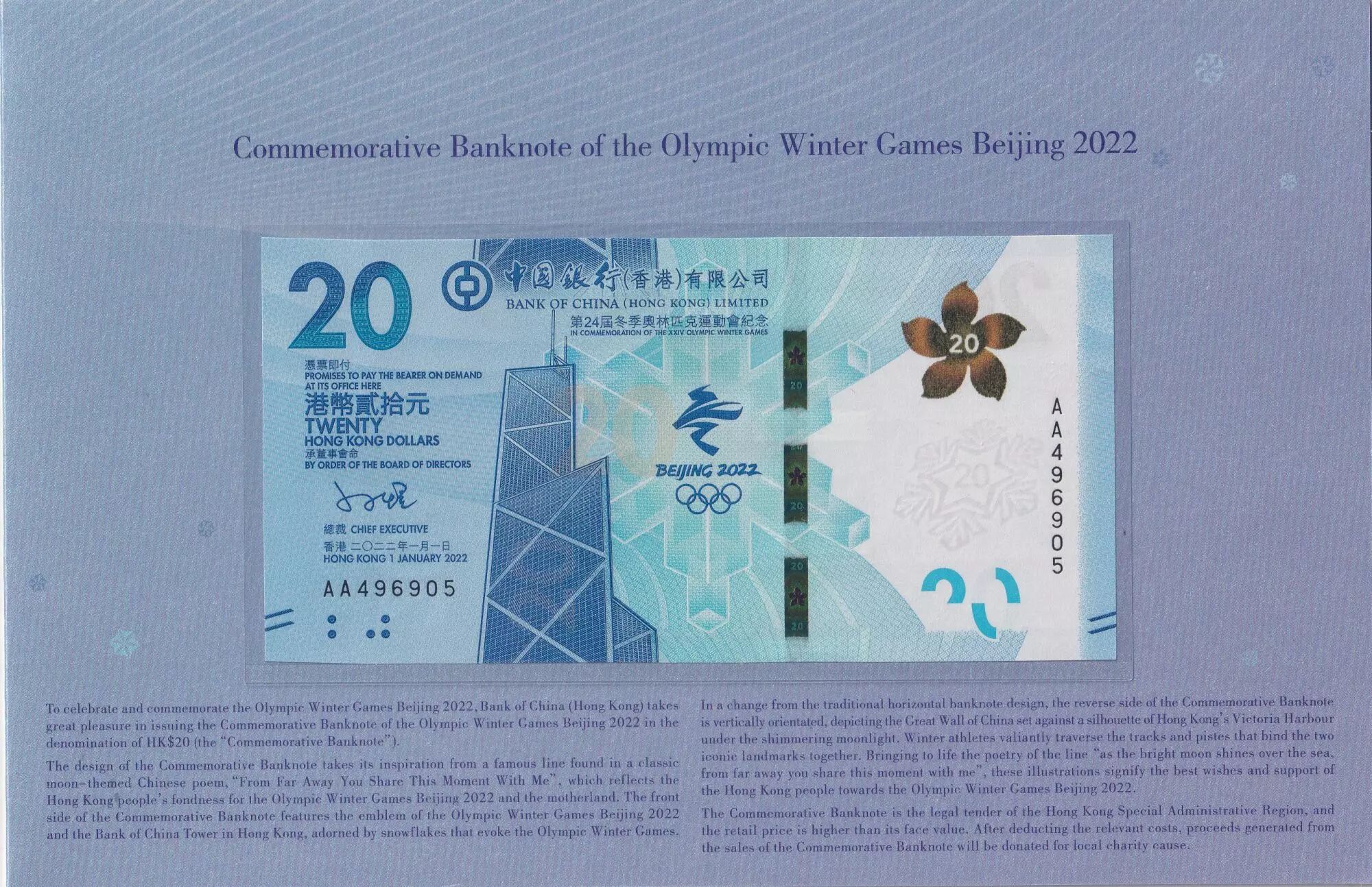 Home > > Hong Kong 20 Dollars - Bank of China - Folder - Olympic Games 2022 - 2022 - P.NEW