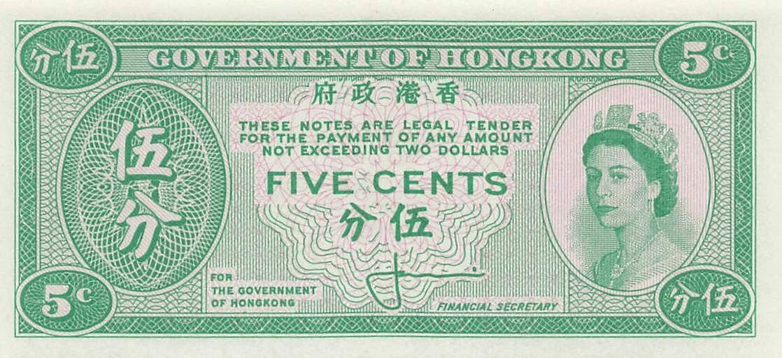 Accueil > Billets du Monde > Billets d'Asie > Hong-Kong > Hong-Kong 5 Cents - Elisabeth II - ND (1961-65) - P.326