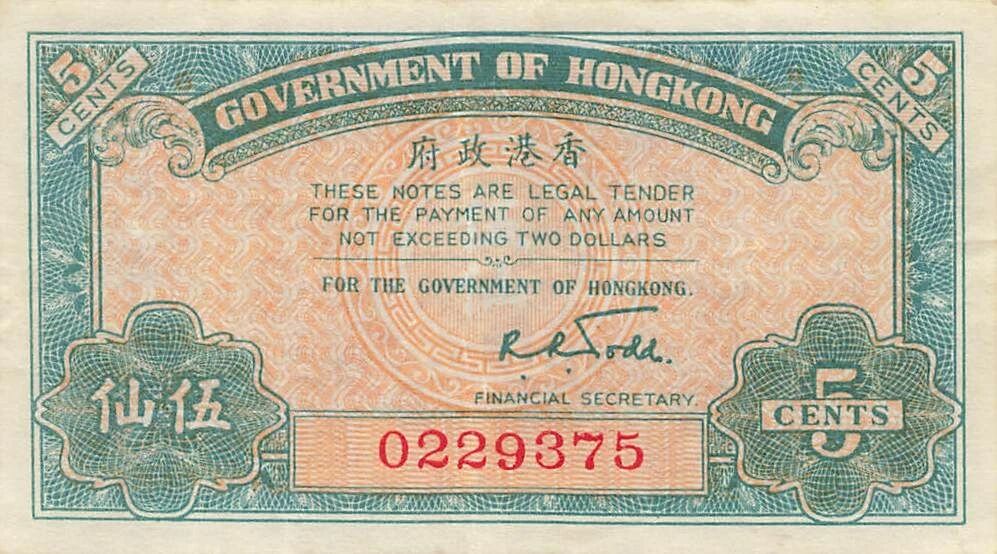 Billet Hong-Kong 5 Cents - ND (1941) - P.314