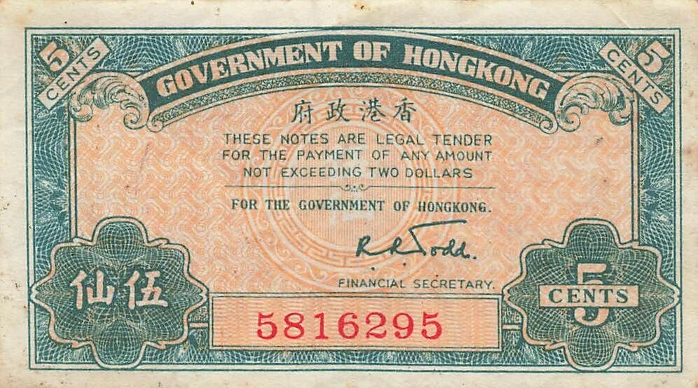 Billet Hong-Kong 5 Cents - ND (1941) - P.314