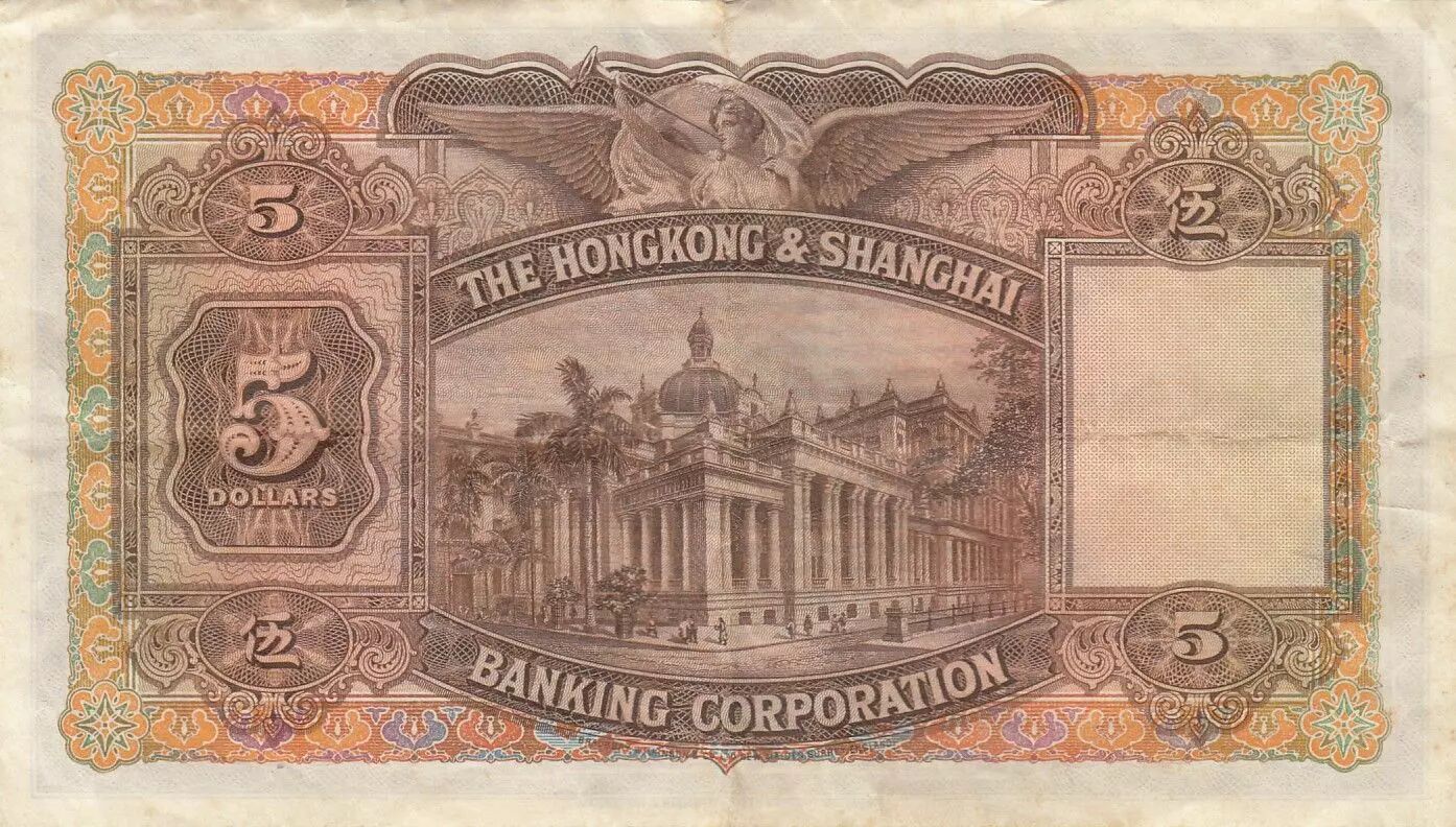 Banknote Hong Kong 5 Dollars - Arms - Banking corporation - 1958