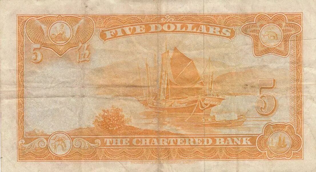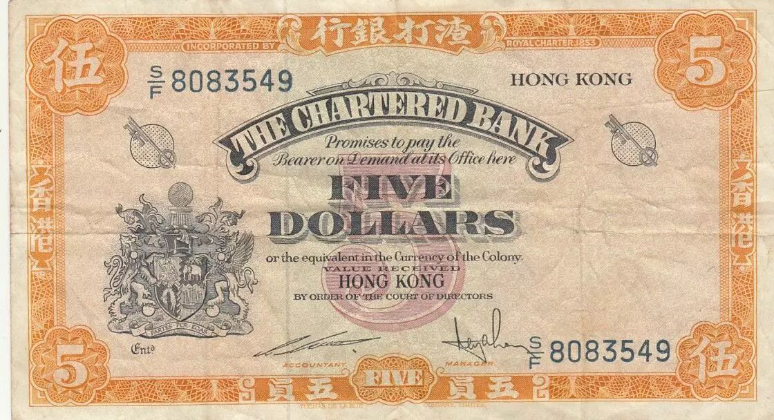Banknote Hong Kong 5 Dollars - Arms - Chartered bank - 1967