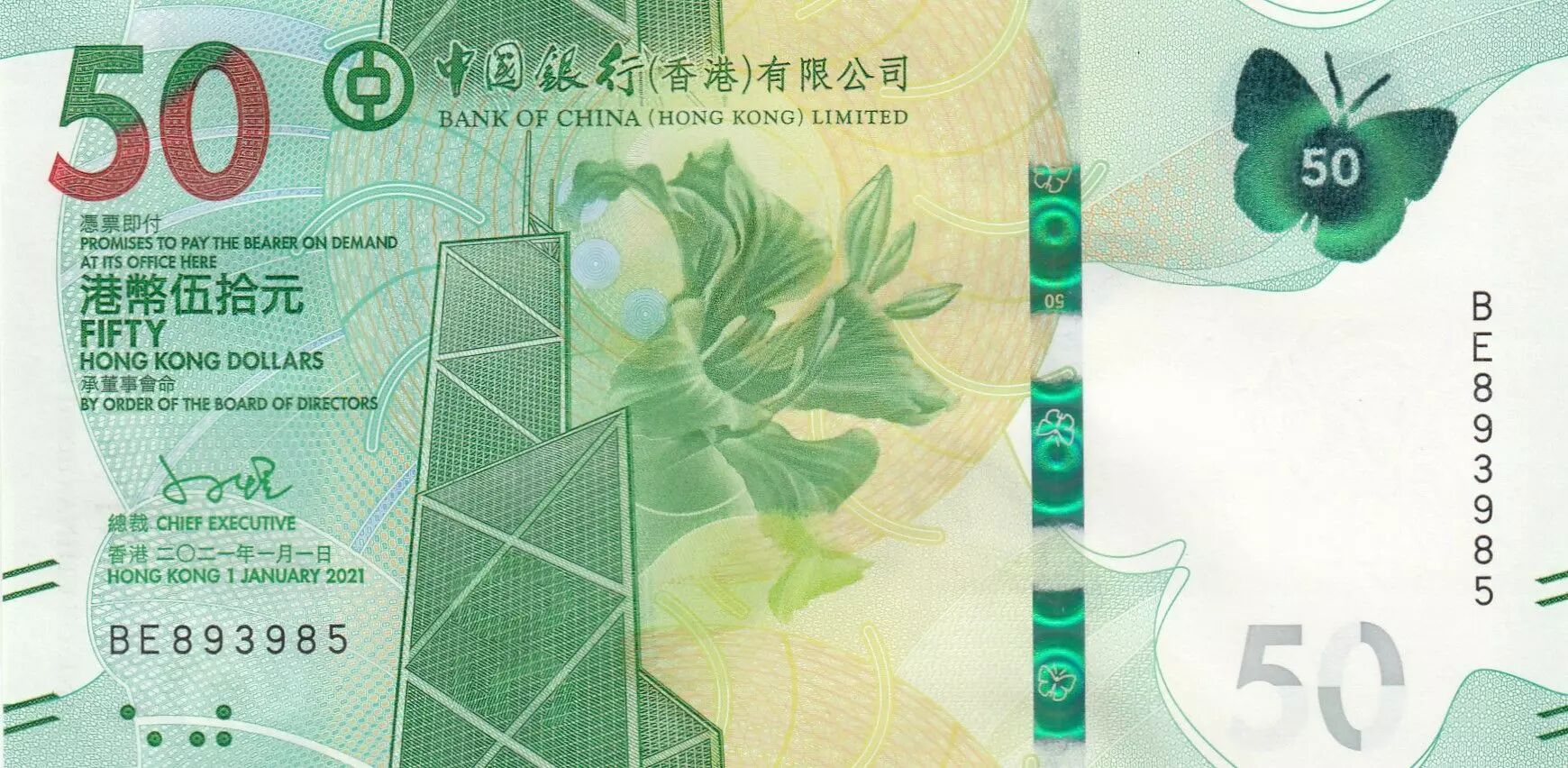 Home > World Banknotes > Asian Banknotes > Hong Kong > Hong Kong 50 Dollars, Bank of China Tower - Butterfly - 2021 (2022)