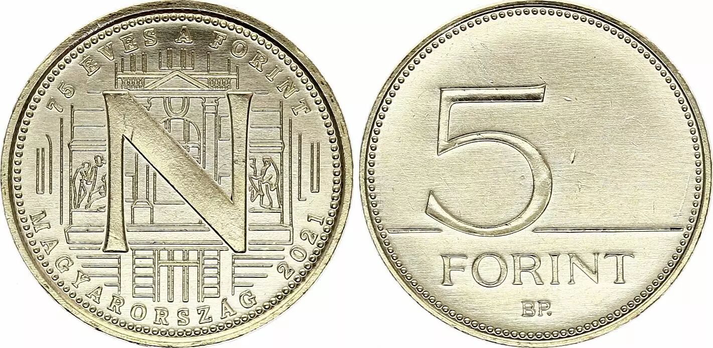 Accueil > Monnaies du monde > Monnaies d'Europe > Hongrie > Hongrie 5 Forint - 75ème anniversaire de l'introduction du Forint - N - 2021