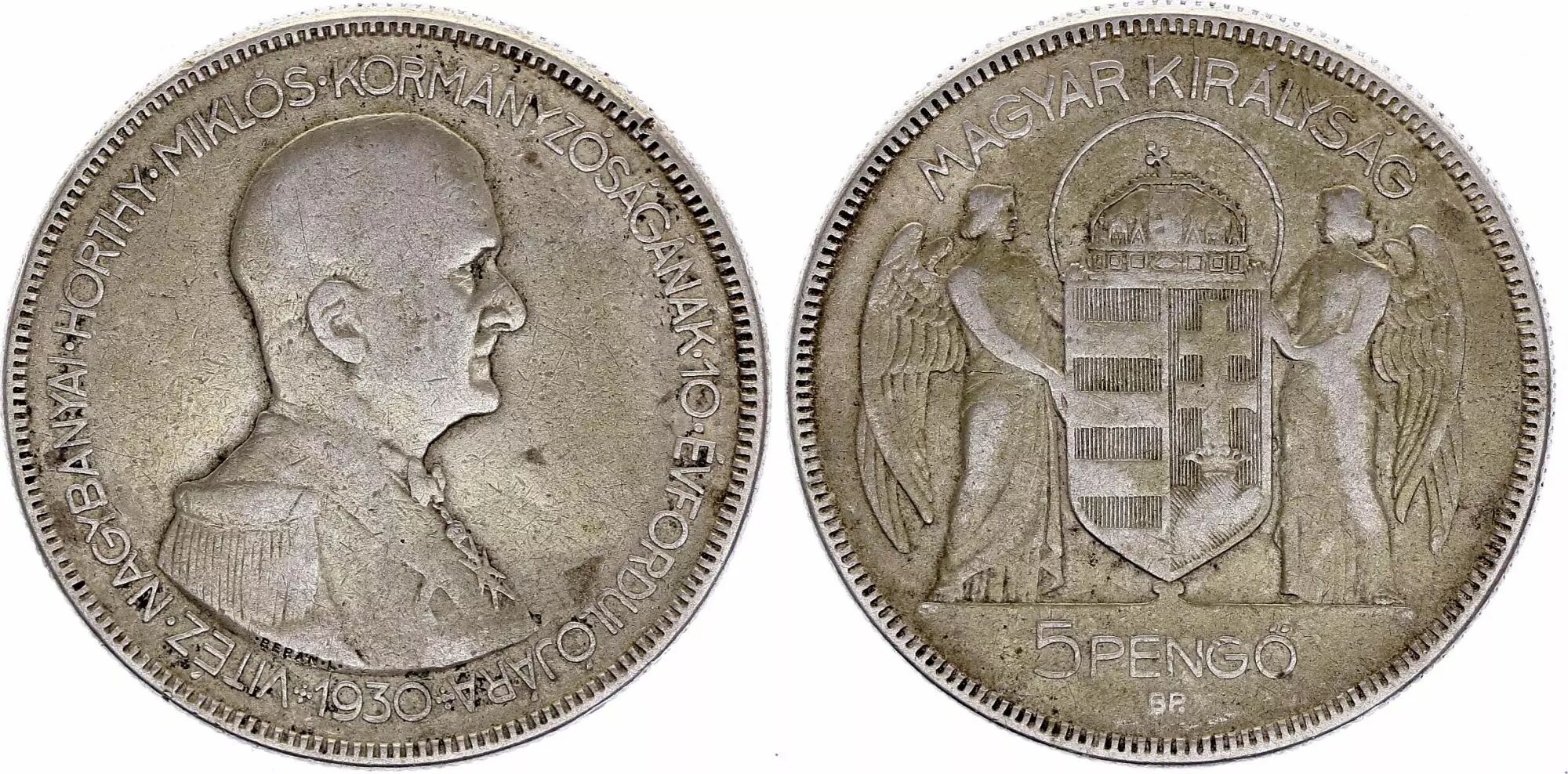 Pièce Hongrie 5 Pengo, Admiral Miklos Horthy -1930