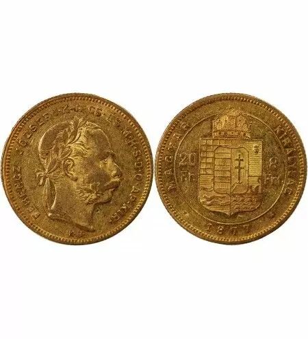 Pièce Hongrie François Joseph I - 20 Francs / 8 Forint Or - 1877 K B Kremnica