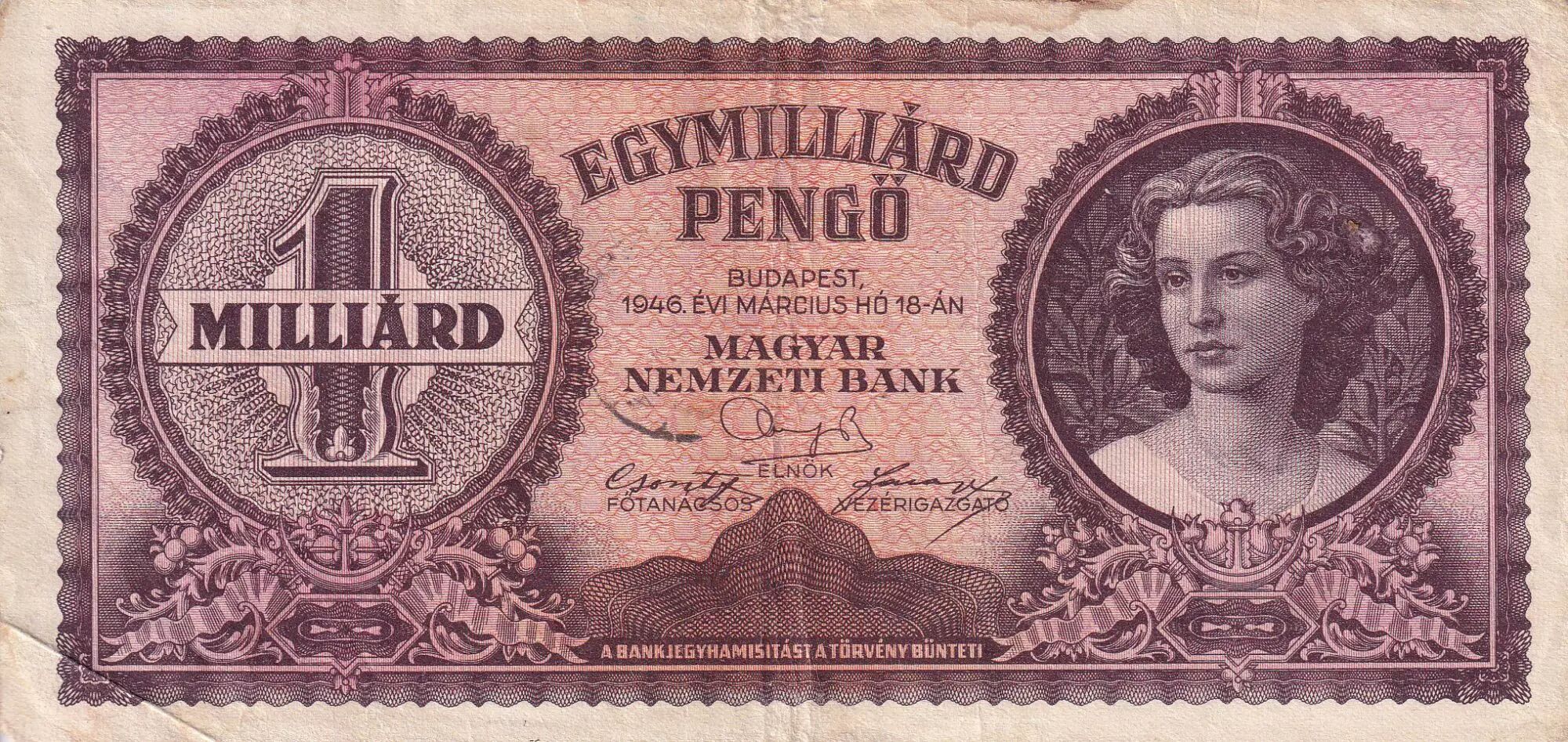 Banknote Hungary 1 Billion of Pengo - Woman - 1946 - P.125